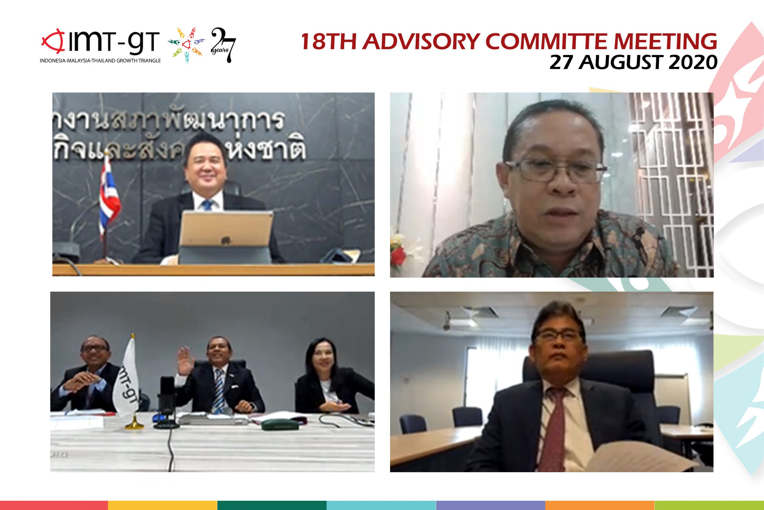 On 27 August 2020, Advisory Committee Meeting (ACM) was conducted virtually and attended by IMT-GT Senior Official Hon. Dr. Rizal Affandi Lukman – Deputy Minister for International Economic cooperation Indonesia, IMT-GT National Secretariat Dato’ Ahmad Zamri Bin Khairuddin – Director of Regional Development Division The Economic Planning Unit (EPU) of the Prime Minister’s Department, Dr. Wanchat Suwankitti – Senior Advisor on Policy and Planning, Office of the National Economic and Social Development Council (NESDC), Mrs. Netty Muharni – Assistant Deputy Minister for Regional and Sub-Regional Economic Cooperation Coordinating Ministry for Economic Affairs, Mr. Chiraphat Chotipimai – Head of IMT-GT / JDS Unit Office of the National Economic and Social Development Council (NESDC), and CIMT. The meeting was chaired by Dr. Wanchat Suwankitti.