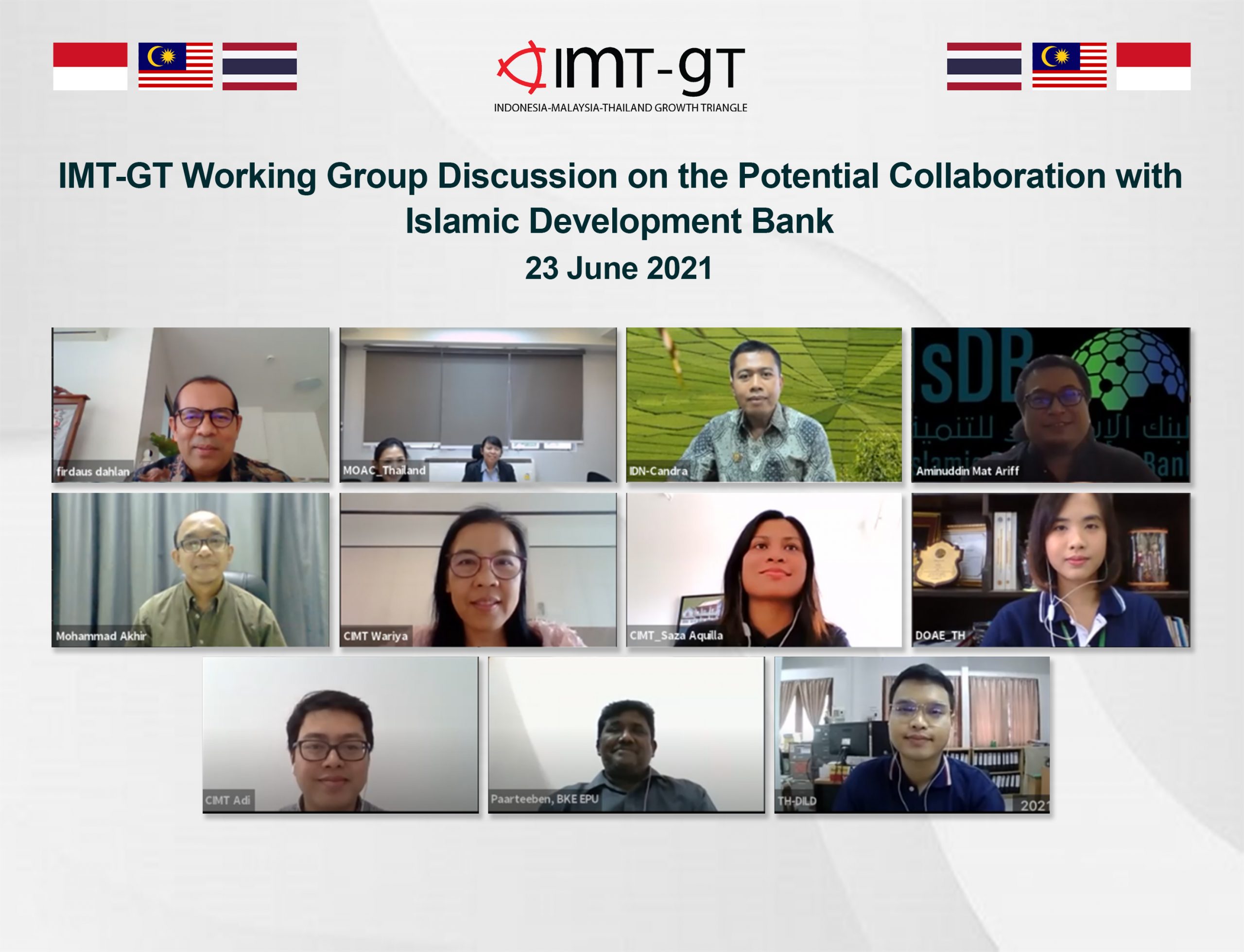 On Wednesday, 23 June 2021, the IMT-GT Working Group for Agriculture and Agro-based Industry (WGAA) had successfully hold a virtual meeting to discuss on the potential collaboration with the Islamic Development Bank (IsDB) on Reverse Linkage Programme. Together with CIMT, the meeting was chaired by Dr. Ade Candradijaya, Director for the Bureau of International Cooperation Ministry of Agriculture of the Republic of Indonesia also the standing Chairman of WGAA. The meeting was also attended by Dr. Vanida Khumnirdpetch (Director of Bureau of Foreign Agricultural Affairs Office of the Permanent Secretary Ministry of Agriculture and Cooperatives, Kingdom of Thailand as Head of Delegation Thailand, Mr. Principle Asssistant Secretary, International Division, Ministry of Agriculture and Food Industries, Mr. Firdaus Dahlan, Director of Centre for IMT-GT Subregional Cooperation (CIMT) and members of WGAA. Mr. Aminuddin Mat Ariff, Regional Coordinator (Asia) for Reverse Linkage Programme, represented IsDB for the meeting.