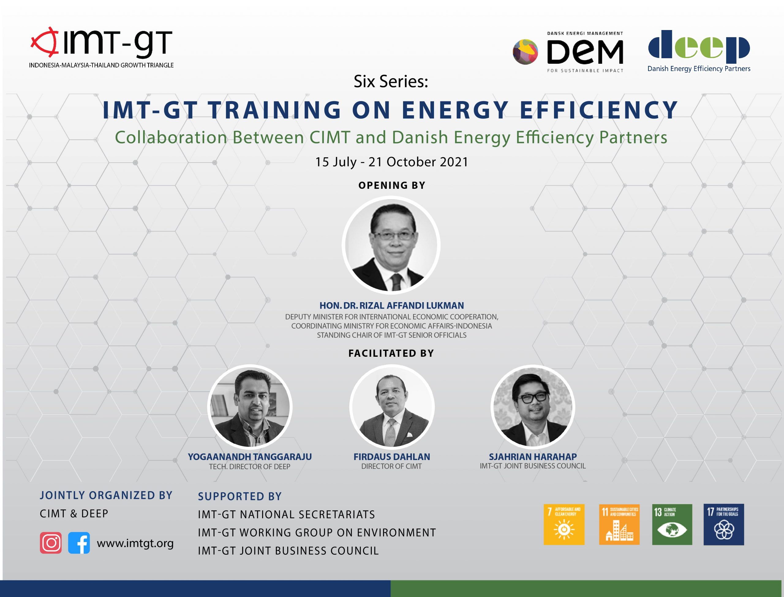 Centre for Indonesia-Malaysia-Thailand Growth Triangle Subregional Cooperation (CIMT) in collaboration with the Danish Energy Efficiency Partners (DEEP), are planning to kick-off a Capacity Building Training on Energy Efficiency, which will be held on 15 July 2021 (Thursday) from 11.00 AM – 11.40 AM (GMT +8, Kuala Lumpur Time).