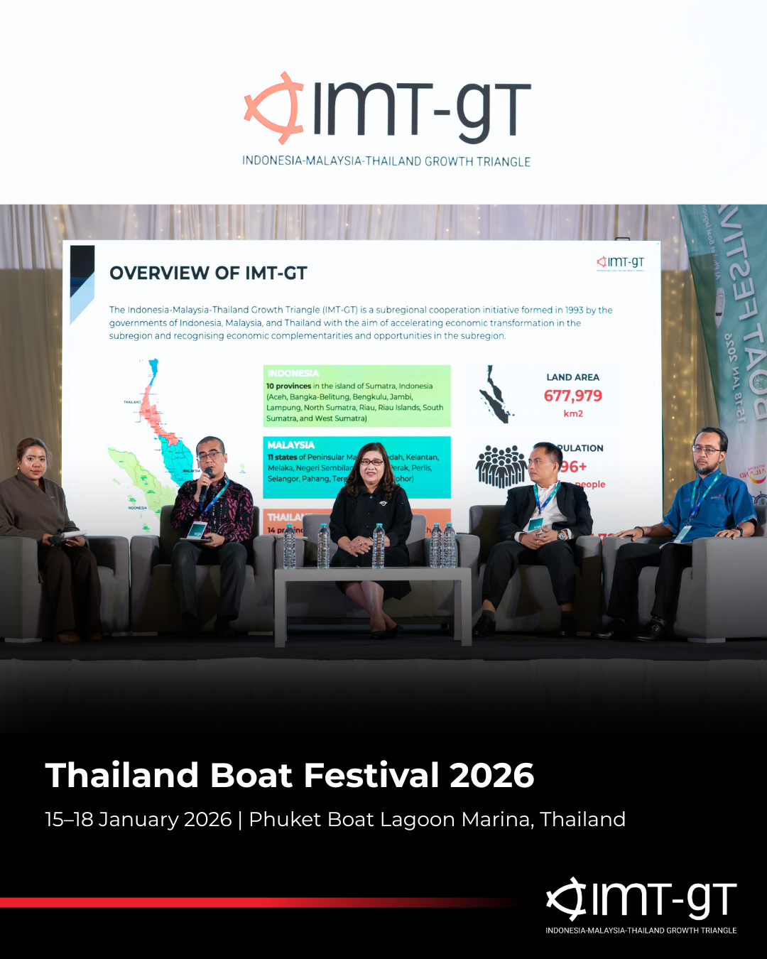 15 January 2026— IMT-GT took part in the Thailand Boat Festival 2026, held from 15–18 January 2026 at Phuket Boat Lagoon Marina, showcasing the subregion’s growing potential in marine and yacht tourism.