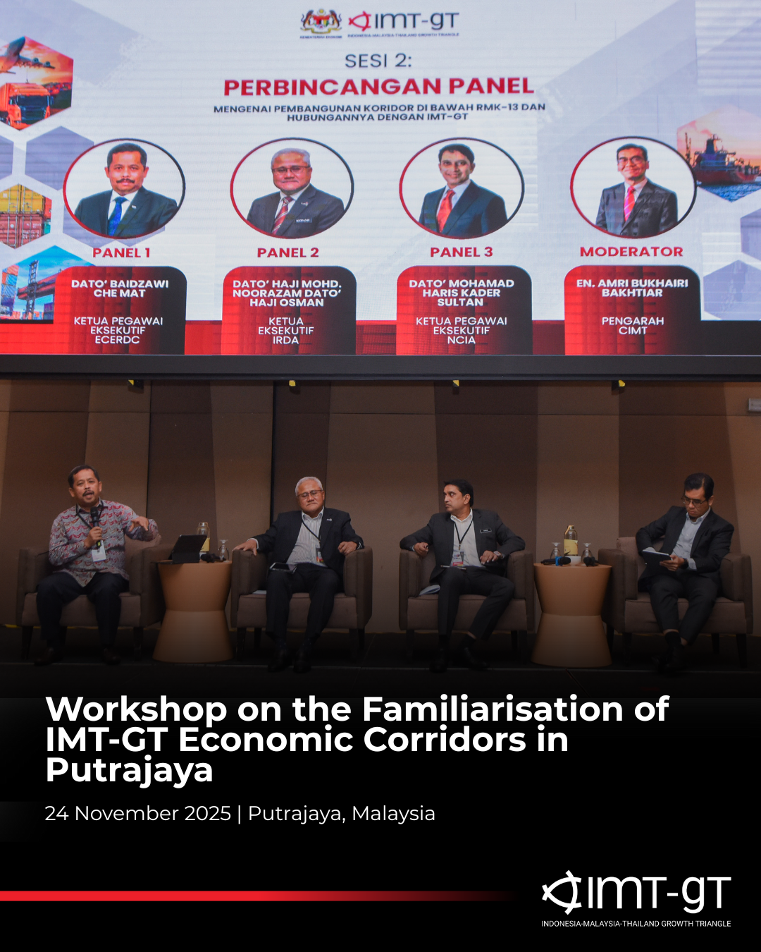 24 November 2025 — The Centre for IMT-GT Subregional Cooperation (CIMT) in collaboration with the Ministry of Economy Malaysia, organised a national-level Workshop on the Familiarisation of IMT-GT Economic Corridors in Putrajaya.
